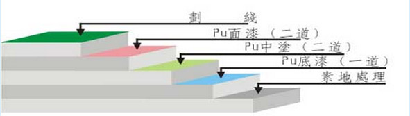 3、PU中涂層 :將PU中涂全面鏝涂二道;