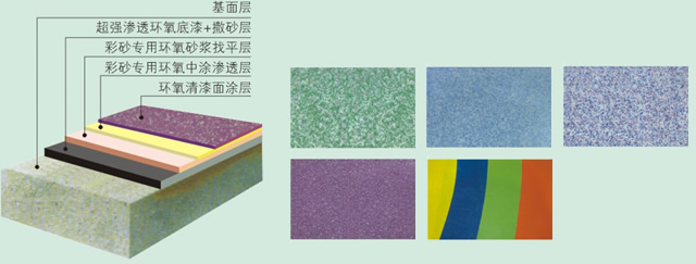 | 彩砂環(huán)氧裝飾地坪是以彩色石英砂和環(huán)氧樹脂組成的的無縫一體化的新型復(fù)合裝飾地坪,通過一種或多種不同 顏色的彩色石英砂自由搭配,形成豐富多采的裝飾色彩及圖案,具有裝飾質(zhì)感優(yōu)雅,耐磨損、耐抗壓、耐化學(xué)腐蝕、 防滑、防火、防水等優(yōu)點(diǎn),它不僅使用于工業(yè)地坪,也使用于商業(yè)及民業(yè)建筑地面,近年來在歐美等發(fā)達(dá)國家十分 流行,被譽(yù)為“彩砂無縫硬地毯”。 | ||||||||||||||||||||||||||||||||||||||||||